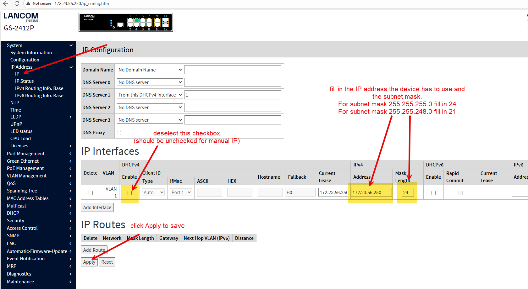 Note: If the device detects a DHCP server, it will automatically obtain an IP address from that server. In this case, the device will no longer be reachable at its default IP address